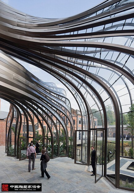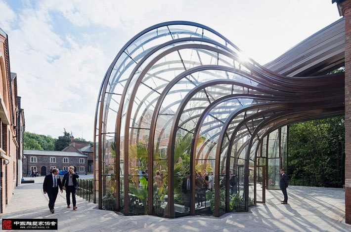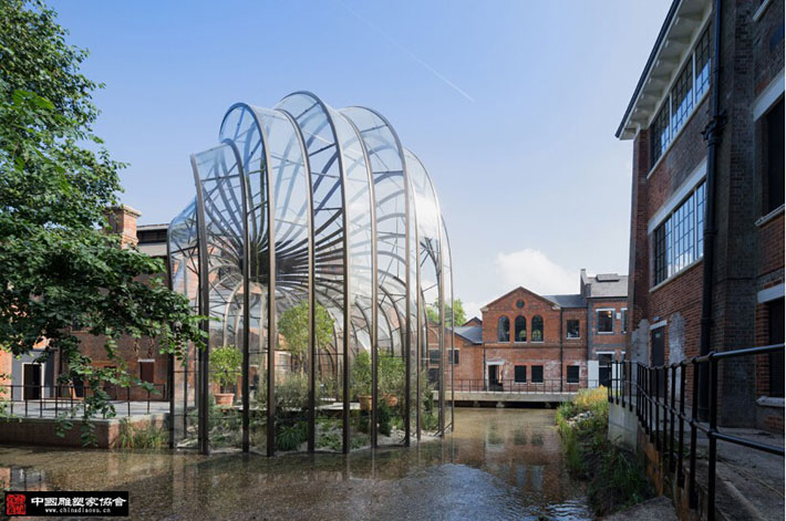 英格蘭鄉村的中心地帶, 著名英國設計師托馬斯·海德威克 (thomas heatherwick )為杜松子酒制造商bombay sapphire設計的一個 蒸餾酒廠竣工了。在1718年,henryportal獲得這片土地并且開始為銀行生產鈔票之前,此地最初的功能是玉米磨坊。在接下來的200年里,一片由磚石建筑構成的網絡逐漸蔓延開來,這些不協調的建筑導致了一個渾濁不堪河網。因此,heather wick的團隊決定在規劃這片環繞水路的土地時,將中央庭院置于這個項目的心臟部位。除了保護當地野生動物和拆遷九處結構上的劣質增建,改造還涉及了位于原址23處歷史建筑的修復工作,這個改造被設計團隊稱為“選擇性拆遷”的工作。為了使河水恢復清澈,河岸也被重新改造和拓寬。 這個重建計劃的焦點集中在兩個植物玻璃溫室:一個為熱帶氣候而另一個地中海氣候,這些玻璃溫室種植著在杜松子酒生產過程中重要的十種植物。這個精密設計的結構由893塊單獨精心設計的構件和超過1公里的被外包青銅的不銹鋼框架支撐而成。