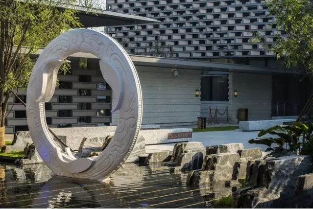 走在路上,道路兩旁的地雕也是中國風十足。